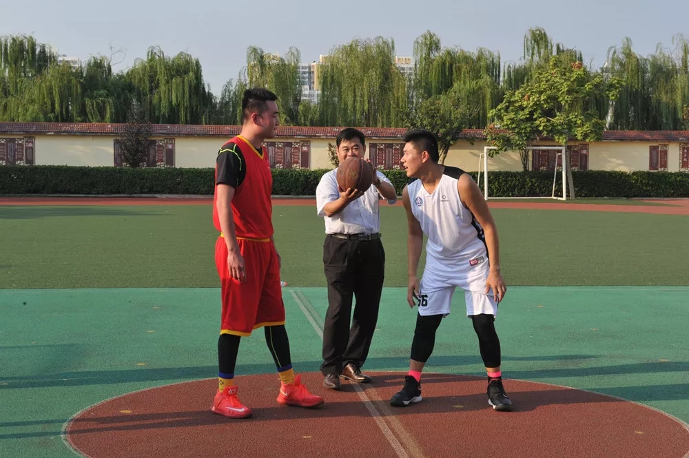 举办迎新篮球友谊赛,李建军院长为球赛开球。