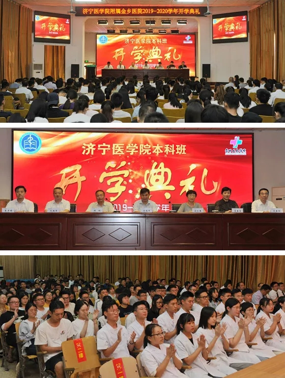 金秋九月,丹桂飘香,我院迎来了济宁医学院2016级临床医学见习班44名学生,他们将在这里度过一年的见习期,开启医学生涯的新篇章。9月5日,济宁医学院附属金乡医院2019-2020学年开学典礼在三楼大礼堂隆重召开。济宁医学院副院长李建军、济宁医学院实践教学管理处处长刘永春、济宁医学院第二临床学院院长程刚、我院党委书记李春荣、院长代建军、副院长李春雨、副院长李彦博及各教研室成员、院兼职授课师、全体临床科室教学秘书、科教科干事、理论班、实习班学生出席典礼。