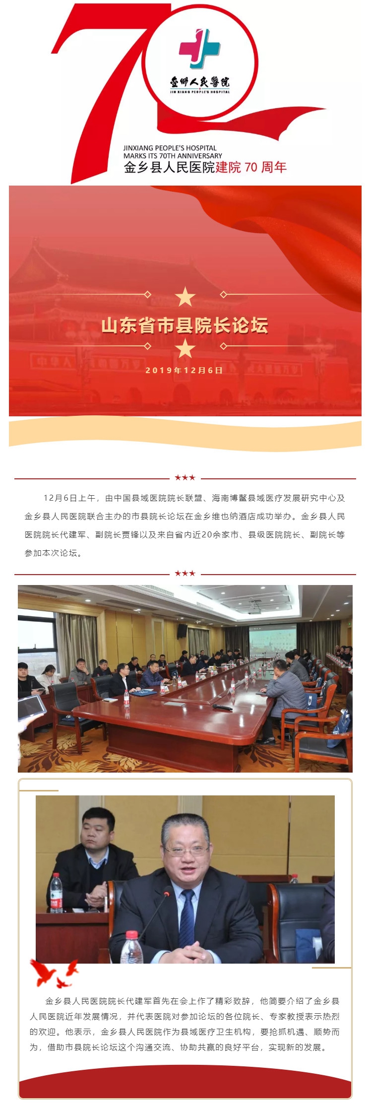 奋进70年 扬帆新时代 70周年院庆 | 金乡县人民医院成功举办山东省“市县院长论坛”