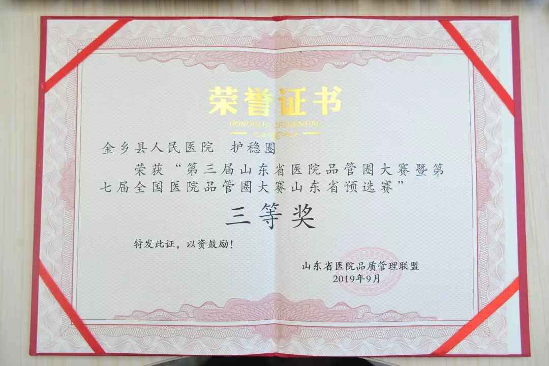 一分耕耘一分收获,此次佳绩的获得,是对金乡县人民医院品管圈工作的嘉奖,更是对该院护理质量管理的充分肯定。金乡县人民医院将以此为契机,不断推动品管圈项目实施,借助科学管理工具去解决工作中的难点与重点问题,努力提升护理工作的精细化管理水平,不断为患者提供优质的护理服务。