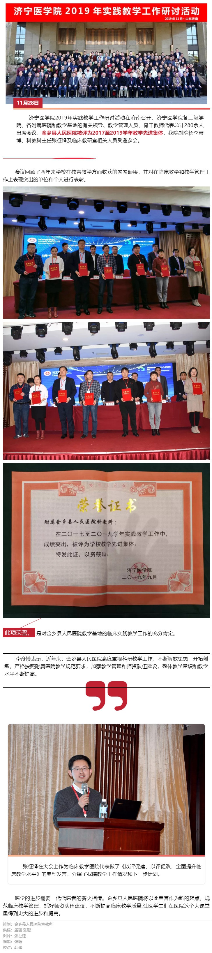 金乡县人民医院被评为教学先进集体