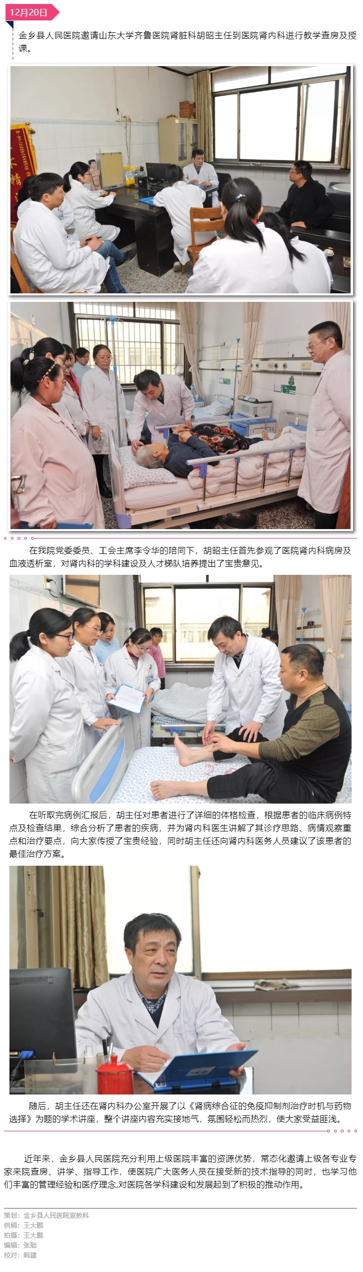山东大学齐鲁医院肾脏科胡昭主任来我院进行教学查房