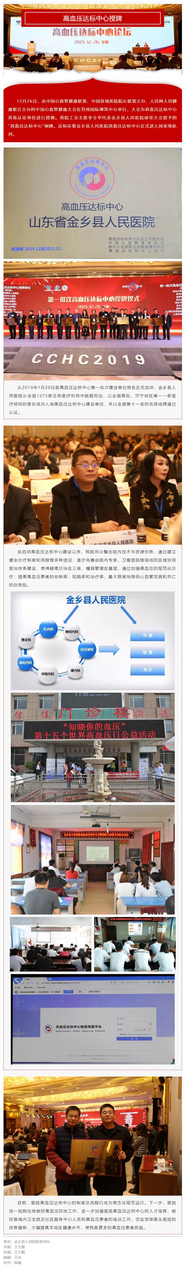济宁市首家!中国心血管健康联盟为我院“高血压达标中心”授牌
